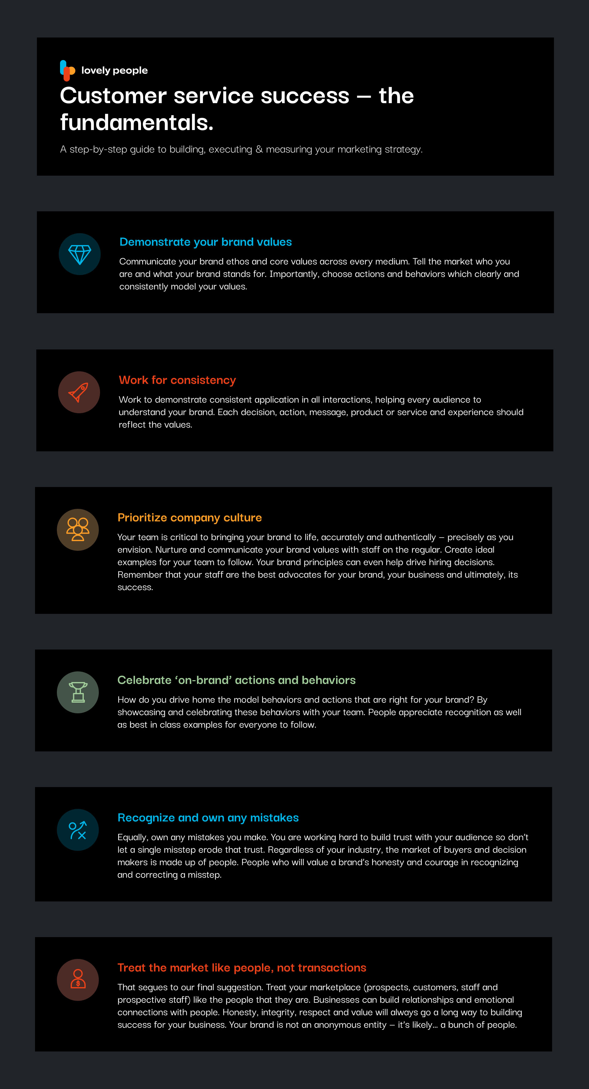 It’s all well and good to talk about your values, your mission and your purpose because that’s what is included in the brand guidelines and what you actually had in mind when you began your business. But in today’s business world, living these ideas — communicating and acting upon them at every engagement — is where your brand principles become reality. For your staff, customers and the market at large.